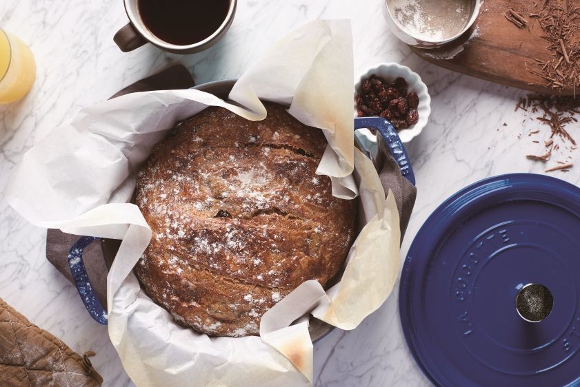 最近はストウブでのパン作りも大人気!蓄熱性がよく、熱が均等に伝わるので外側はカリっと、中はフワフワもっちりしたカンパーニュが焼き上がります。