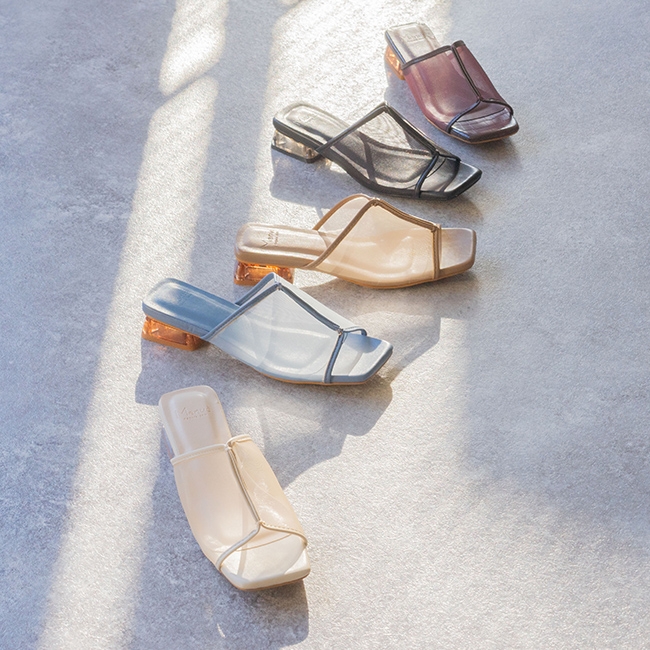 チュール×クリアヒールの夏に映えるスライドサンダル