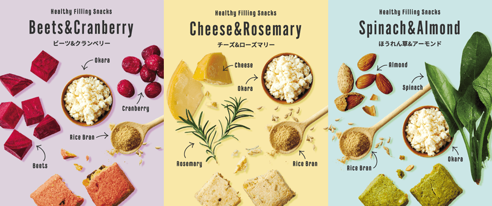 「Healthy Filling Snacks OKARA×RICE BRAN」