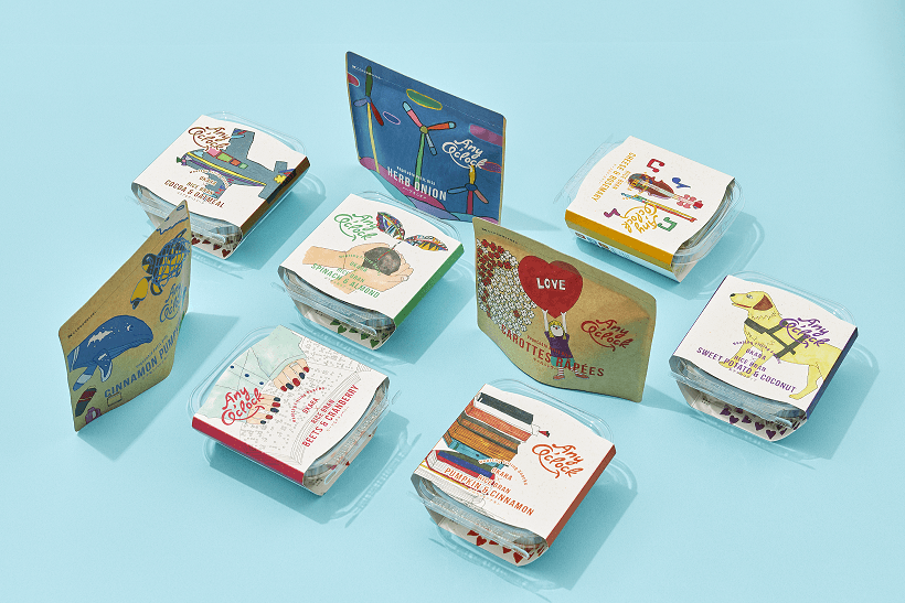 新ブランドの第一弾「Healthy Filling Snacks OKARA×RICE BRAN」は、大麦粉、おから、米ぬかをベースに、野菜やハーブ、ナッツ、チーズなどを練り込んだ、6種6色のクッキーです。
