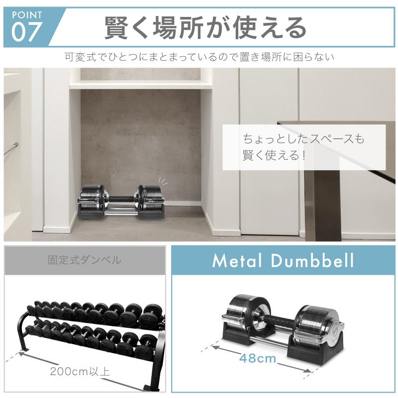 ・省スペース。※1台あればダンベルを重量ごとに複数揃える必要なし