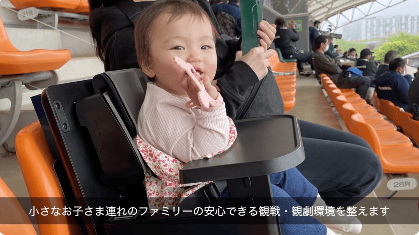 より多くの施設において、障害児を含む小さな子連れ家族が気軽にスポーツ観戦等を楽しめる環境が整うことは、家族の豊かな時間の創出、豊かな社会づくりに貢献するのみならず、様々なニーズを持つ人たちが体験を共有できる空間を広げ、社会の多様性の可視化につなげることにも繋がっていきます。