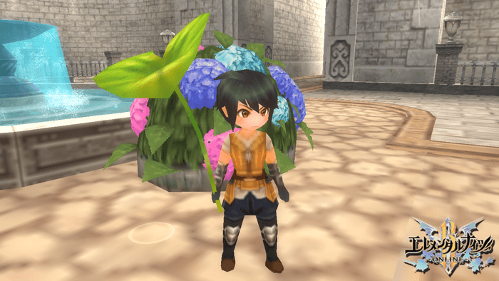① 「エレメンタルナイツR」ゲーム内で春らしい背景やおしゃれを装備してスクリーンショットを撮影
