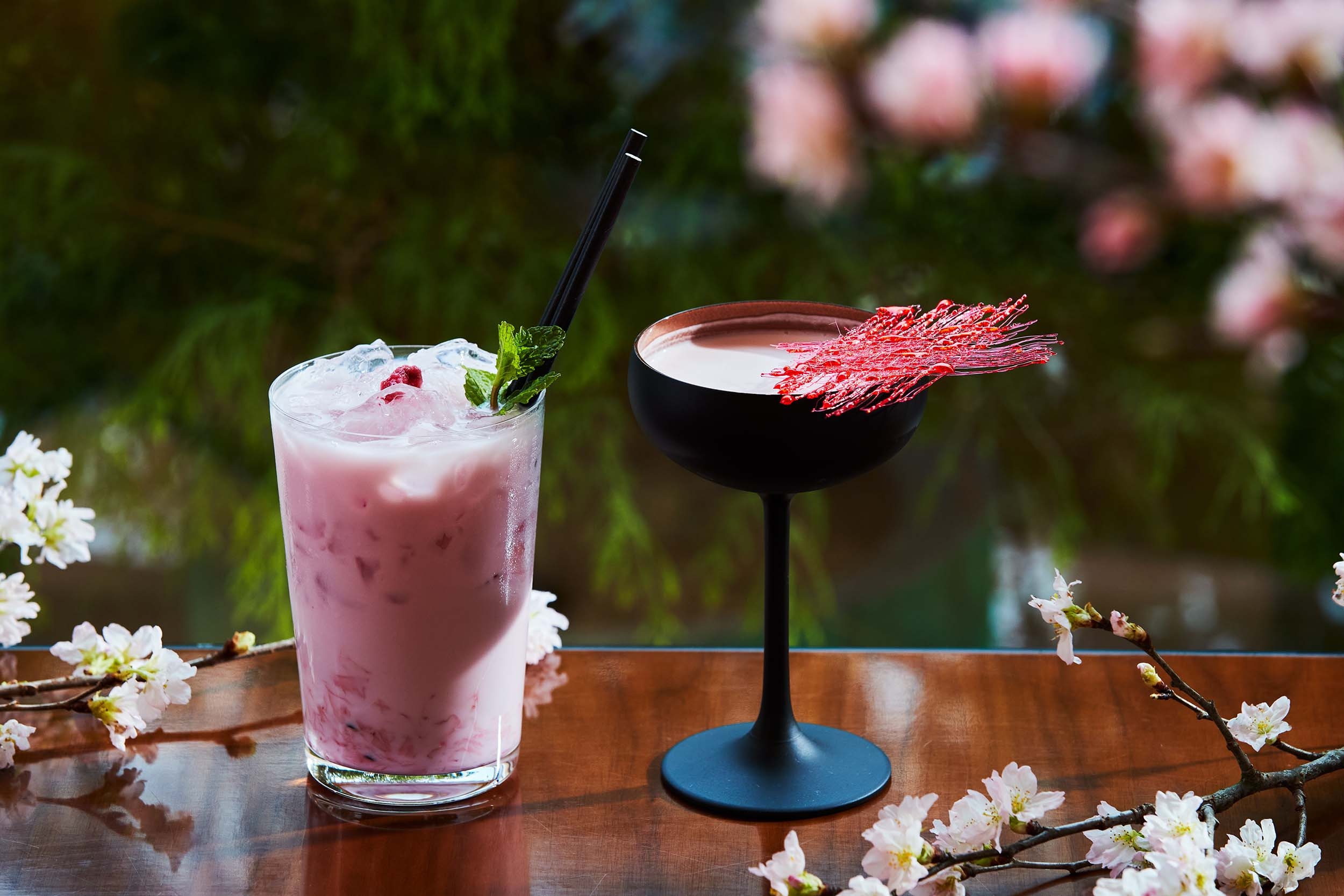 (左)モクテル「宮城野桜」 1,400円/カクテル「Pink & Rouge」 1,600円