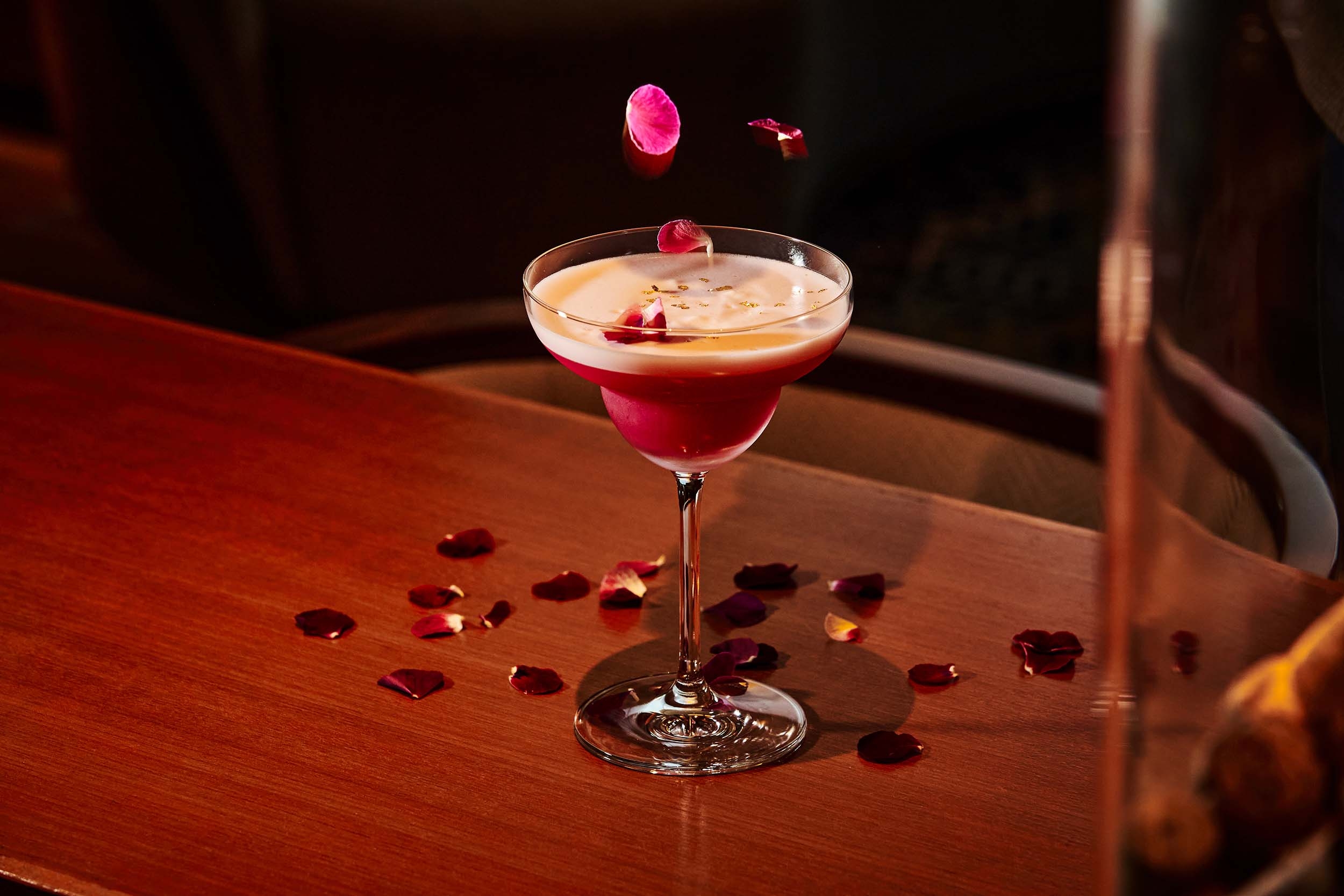 桜の花びらに気持ちのいい春風を感じる、ウィスキーベースの大人な一杯。