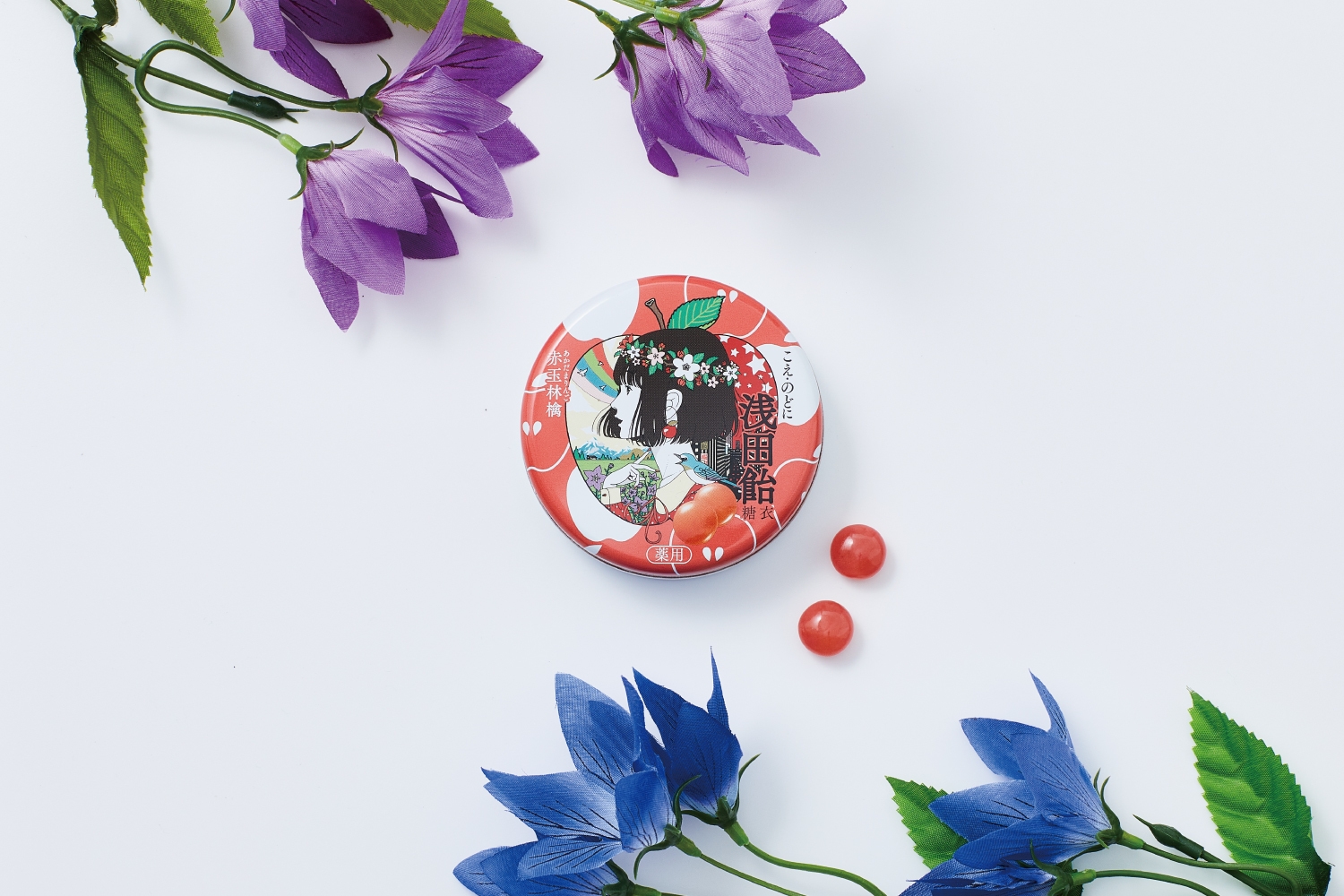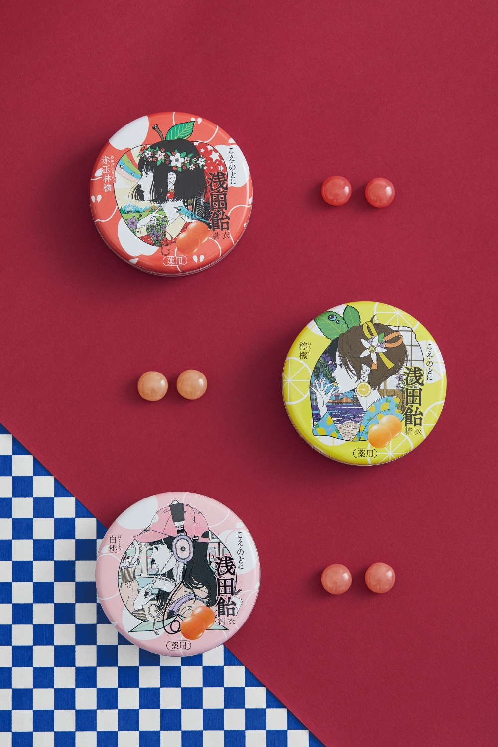 創業以来“良薬にして口に甘し”の精神の下、製品づくりをしてきた浅田飴が、伝統の糖衣技術や生薬配合処方、服用のしやすさにこだわって開発いたしました。withコロナの時代に手軽にこえ・のどをいたわる製品となっております。またパッケージには人気イラストレーターの中村佑介氏を起用し、レトロモダンな缶に仕上げました。