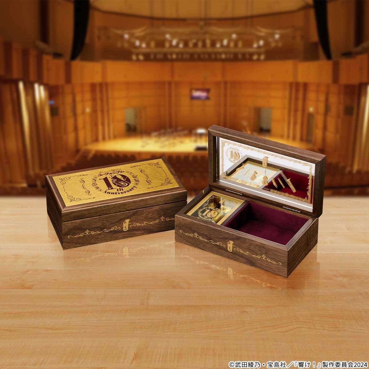 京都アニメーションが手掛ける人気吹奏楽アニメ『響け!ユーフォニアム』が10周年を迎えたことを記念して、純金「金沢箔」で天面を装飾したオルゴールボックスが登場!