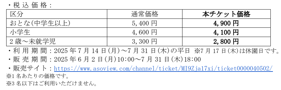 夏休みにぴったり!お得なチケットの販売が決定! 6月2日(月)10:00から数量限定で販売します!