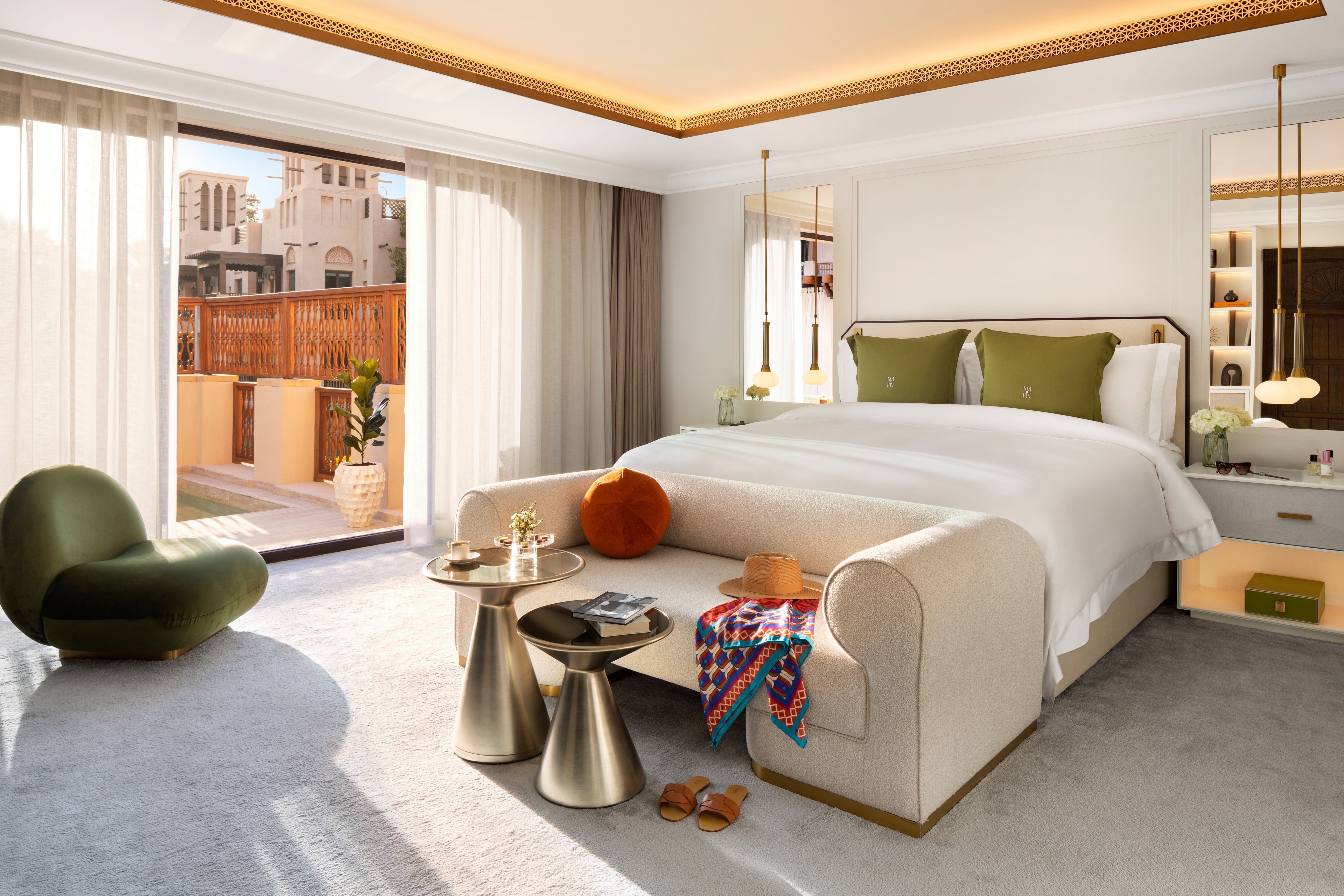 瀟洒でモダンなインテリアに一新された7棟のヴィラから成るマラキヤ・ヴィラは、オートクチュールのように時代を超越したエレガンスに満ちています。ドバイを拠点に活動するサハール・アリヤーサー(Sahar Alyaseer)によってデザインされたヴィラの印象的な美しさは、リゾートのアラベスクデザインへのオマージュであり、ノスタルジックなありし日々のロマンティシズムを醸し出しています。ヴィラ内の広々とした室内には、絵のように美しい水路と庭園を臨む大きな窓から差し込む自然光がふりそそぎ、ニュートラルなインテリアが静かな印象を醸す中にポップな色彩を加えたデザインからは、深みと温かみも感じられます。