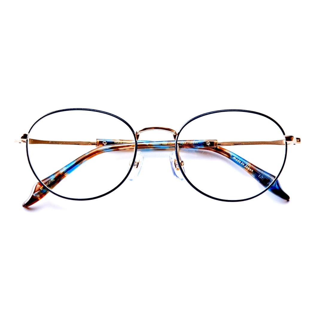 柔らかな色合いのカラーをフレームに用いた大人のメタルフレーム、リムへ施した転写や同系統のバイカラーはコンビネーションにも見える考え抜かれたデザインです。