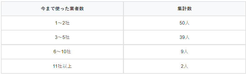 今まで使ったことがある海外FX業者の数もアンケートを取りましたが、1~2社の人が50人となり、ほとんどの人が業者をそこまでたくさんは使っていないことが分かりました。