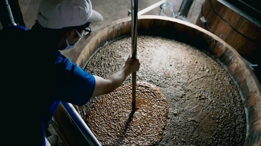 - 伝統的な木桶天然醸造で丹念に醸造。塩水量を減らし十水仕込とすることで素材の持つ濃厚な旨味とまろやかさを活かしています。