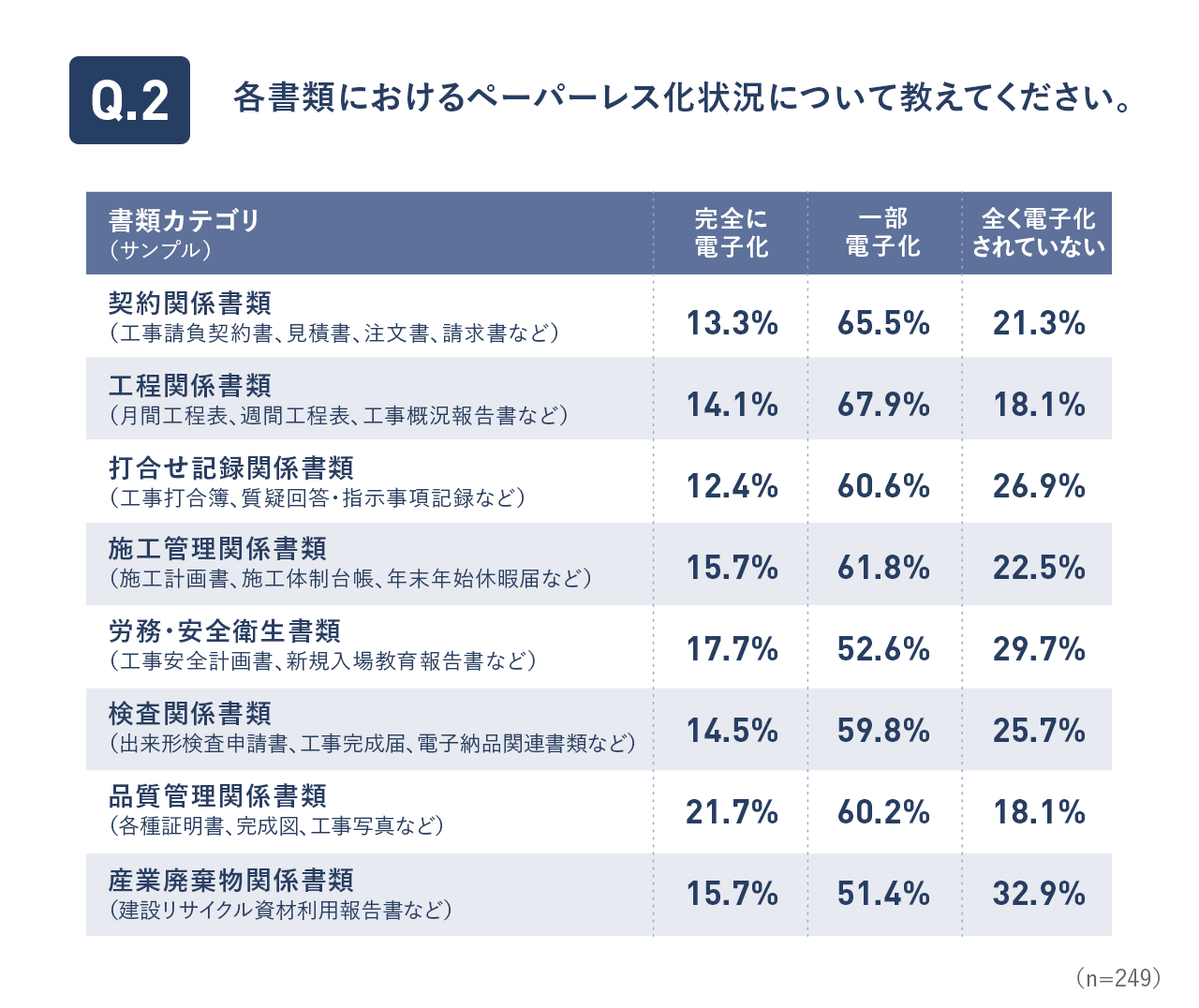 Q2 各書類におけるペーパーレス化状況について教えてください。