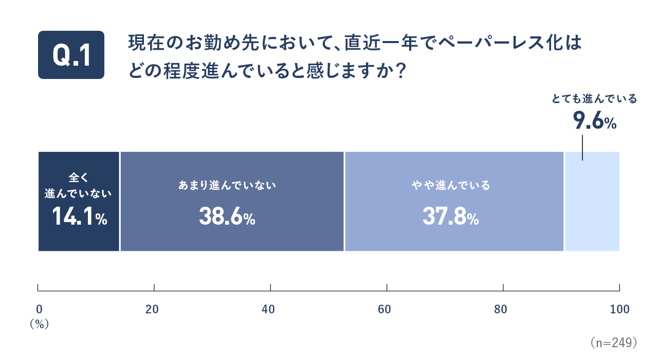 Q1 現在のお勤め先において、直近一年でペーパーレス化はどの程度進んでいると感じますか?