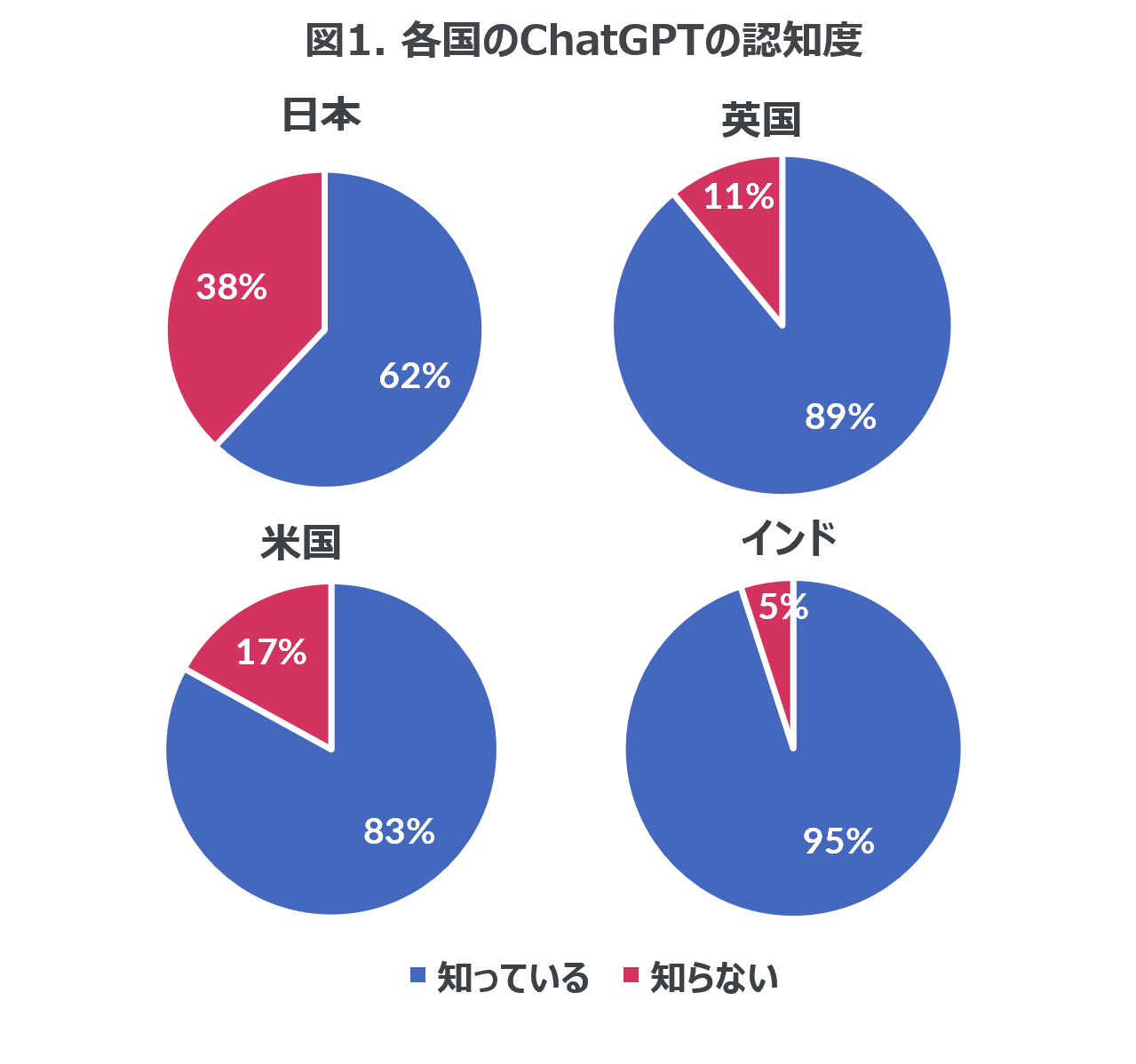 ChatGPTの認知度、日本は62%、英国や米国では80%以上、インドでは95%もーChatGPTをはじめとした生成AIに関する意識調査ー