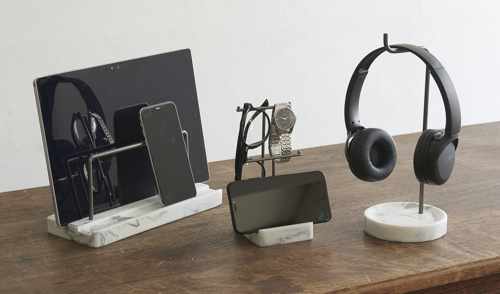 浸透しつつあるテレワークも、シックな小物で雰囲気も気分も上げれば作業効率がアップ!タブレットPC&スマホスタンドは、ベースは高級感ある大理石調で、重みがあるぶん安定性があります。またリモート会議で映り込んでも、こんなシンプルなデザインなら仕事の邪魔にもなりません。