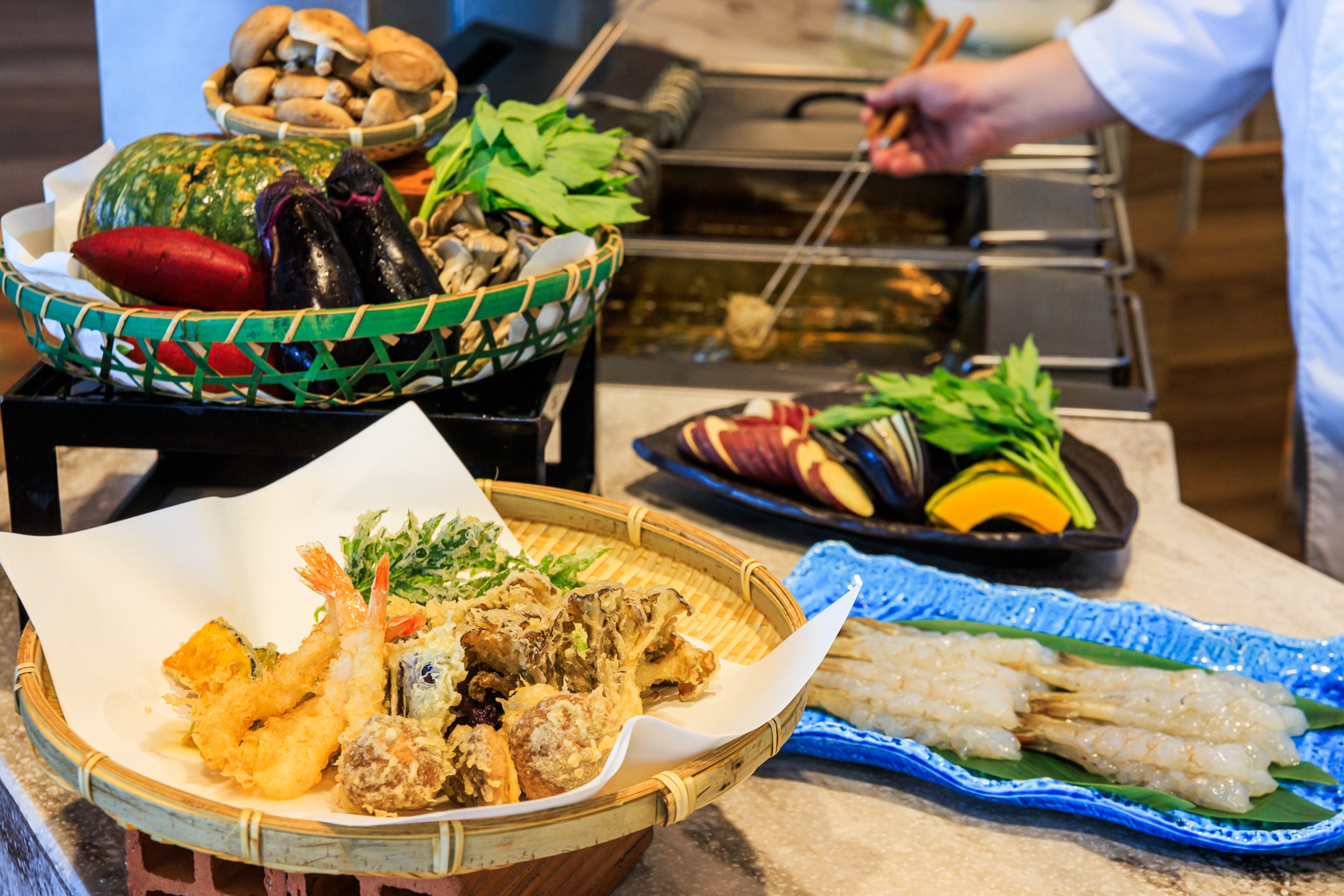 2024年9月1日より夕食の提供スタイルを一新。これまで会席料理、夏の期間はスペシャルサマーブッフェ、天ぷらや本まぐろ寿司食べ放題フェアを開催するなど、お客様のニーズに合わせて、新しい試みに挑戦してまいりました。今秋からは、プラン(コース)によって選べる会席メニューに加え、刺身や天ぷら、デザートなどはビュッフェスタイルで提供します。ライブキッチンでの出来立てを味わう体験をお楽しみいただけます。