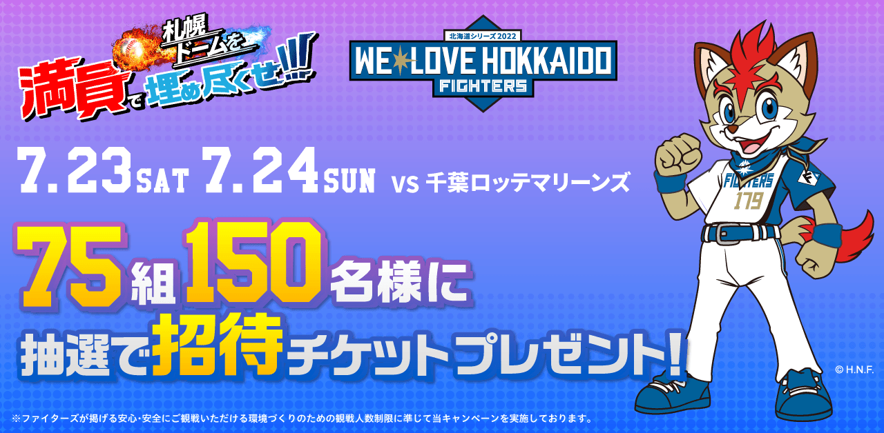 ※ファイターズが掲げる安⼼・安全にご観戦いただける環境づくりのための観戦⼈数制限に準じて当キャンペーンを実施