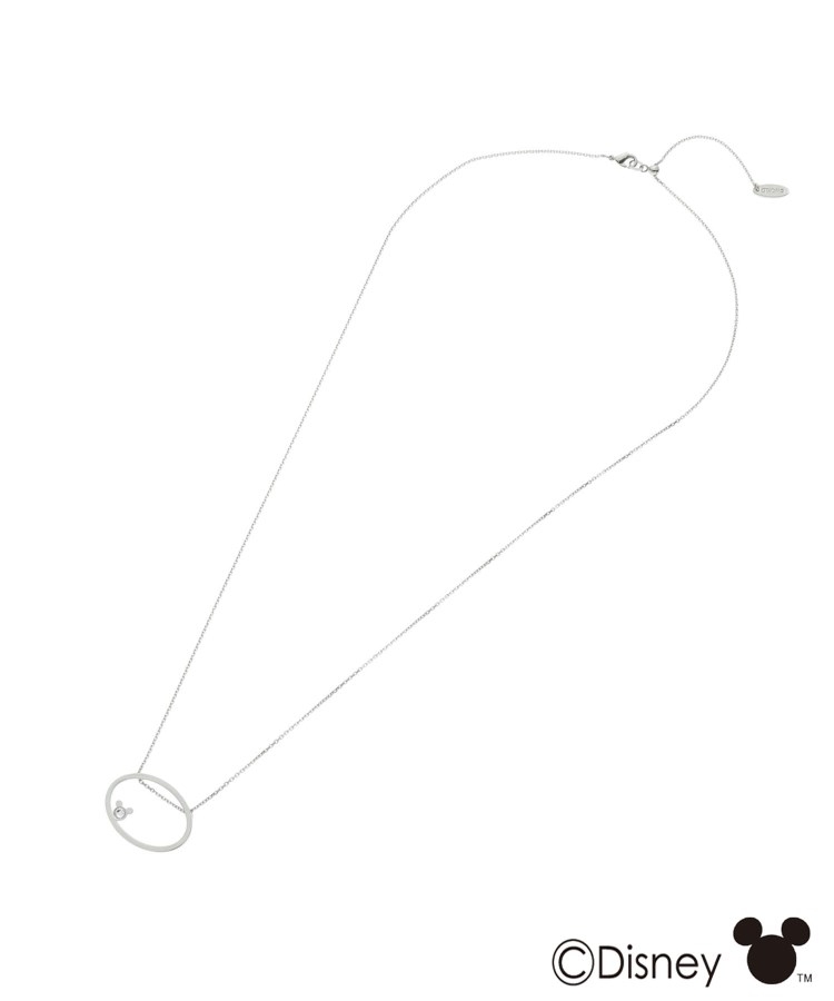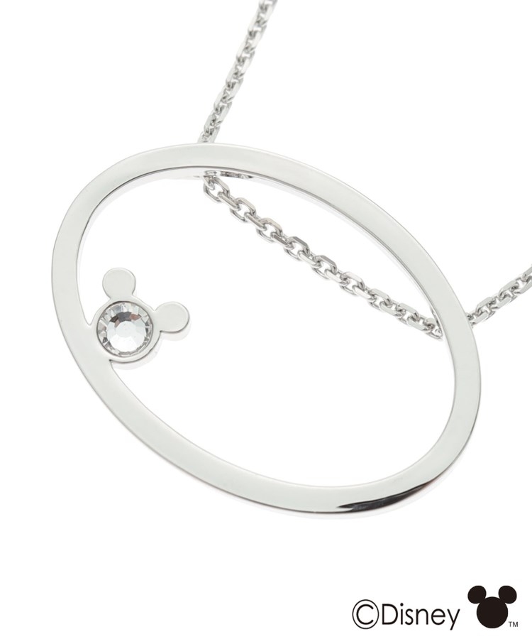 華奢ですっきりとしたカットのサークルパーツに、さりげなくきらりと輝くビジューを使った「ミッキーマウス」デザインのネックレスです。チェーンは長さが調節可能ですのでコーデに合わせてお使いいただけます。
