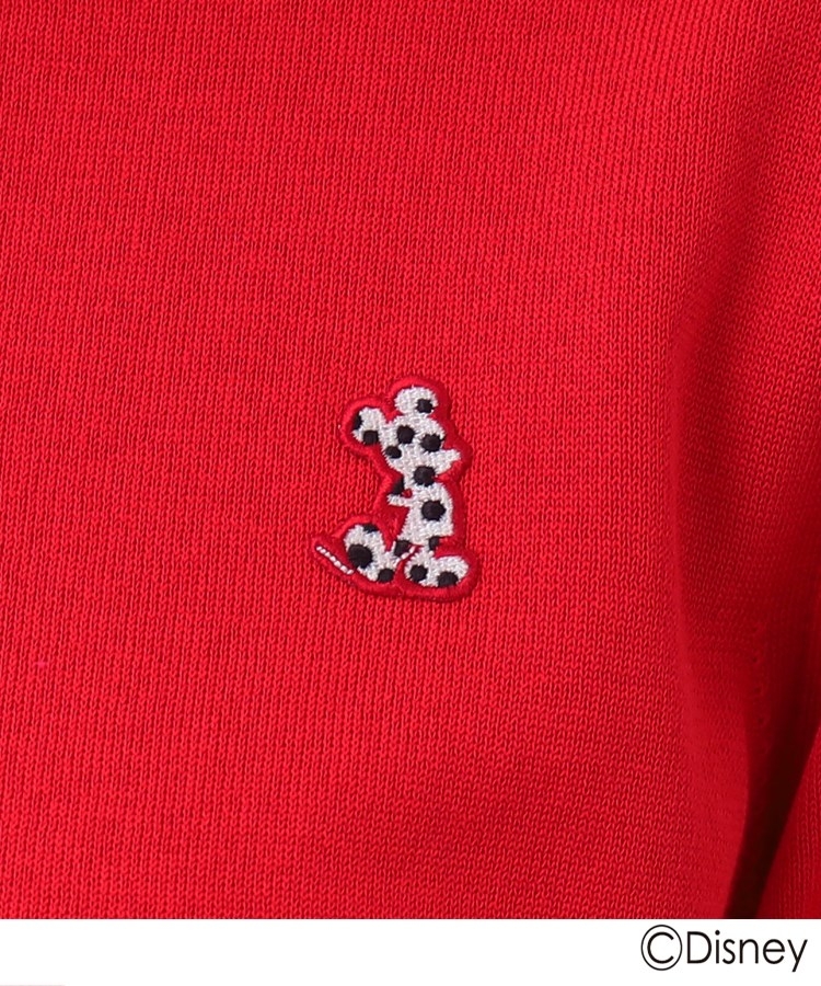 クルーネックのカーディガンにドット柄モチーフの「ミッキーマウス」で大人の遊び心を演出。フロントには厚みのあるシェルボタンを使用し、大人のスタンダードアイテムの雰囲気を醸し出します。