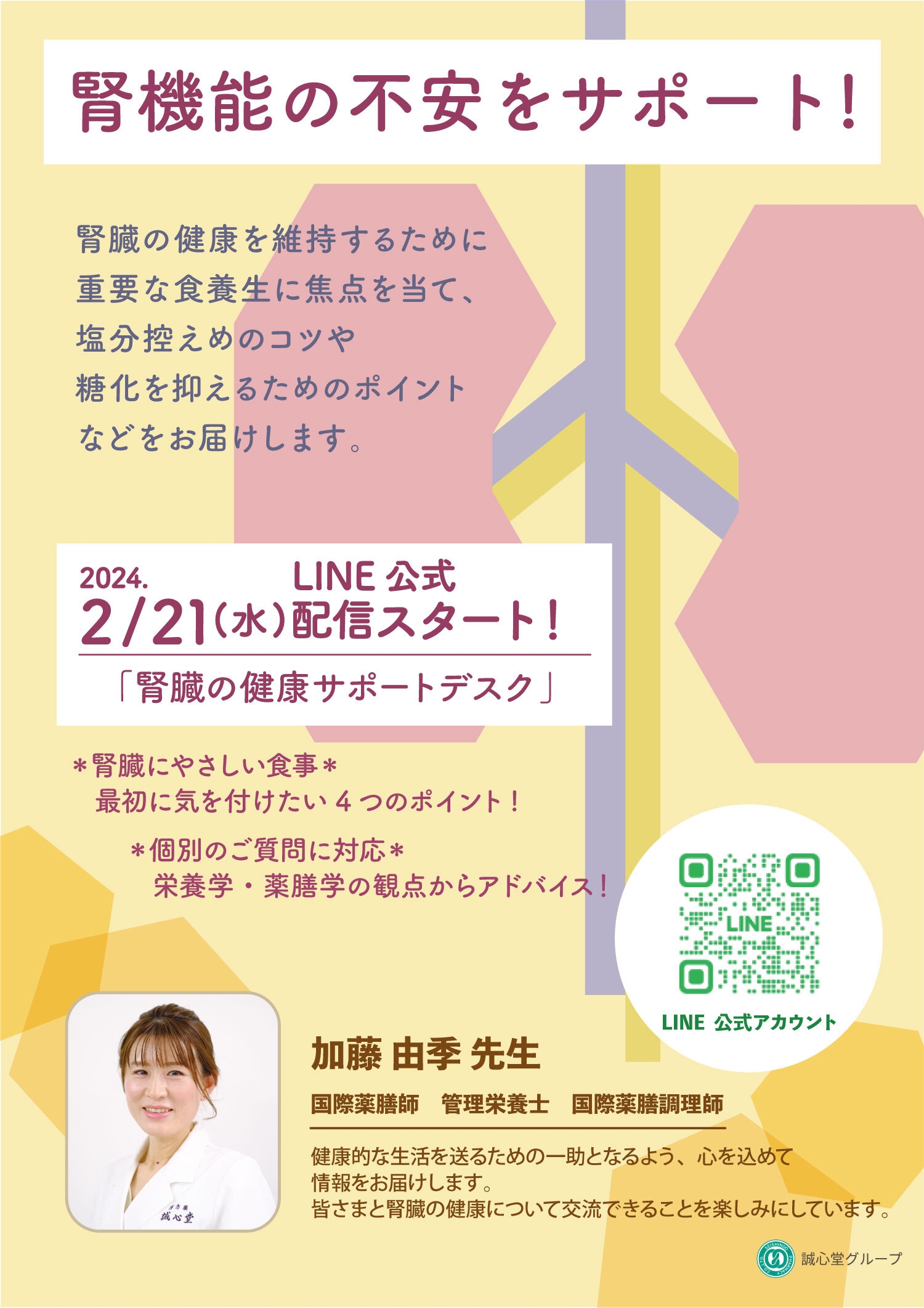 薬膳レシピの加藤由季さん(国際薬膳師・管理栄養士)によるレシピやコラムなどの配信をしています。管理栄養士として腎機能の不安をサポートします。
