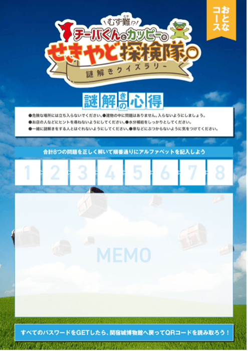イベント名 :むず難!? チーバくんとカッピーのせきやど探検隊