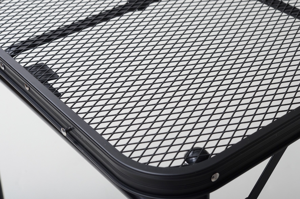 - 金属製のメッシュ天板で水や熱に強い“タフ”なテーブル