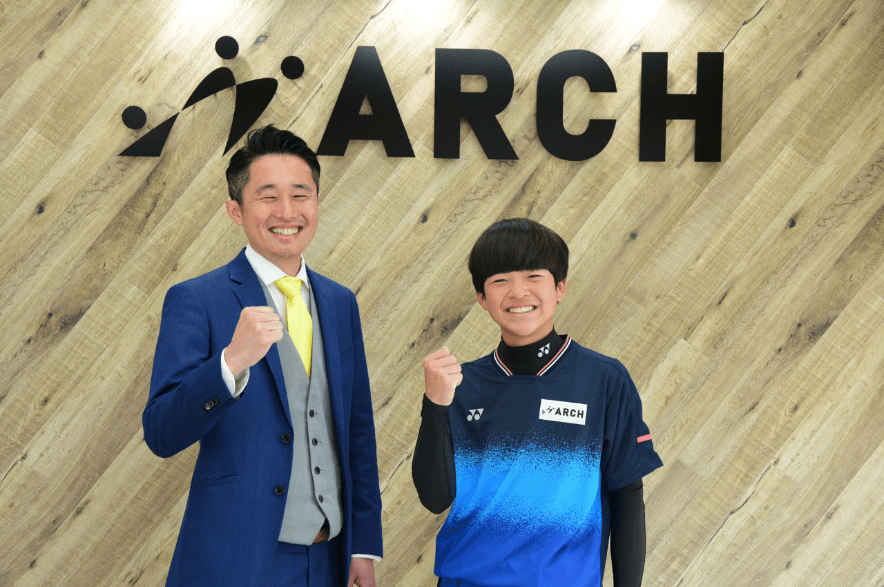 この度、株式会社アーチとスポンサー契約という形でサポートして頂くことになり大変嬉しく思います。これまでコーチや仲間、たくさんの方々に応援していただき、全国で戦える選手になることを目標に練習に励んできました。中学校では、厳しくも温かい先生のご指導を受け、文武両道を目指して来ました。