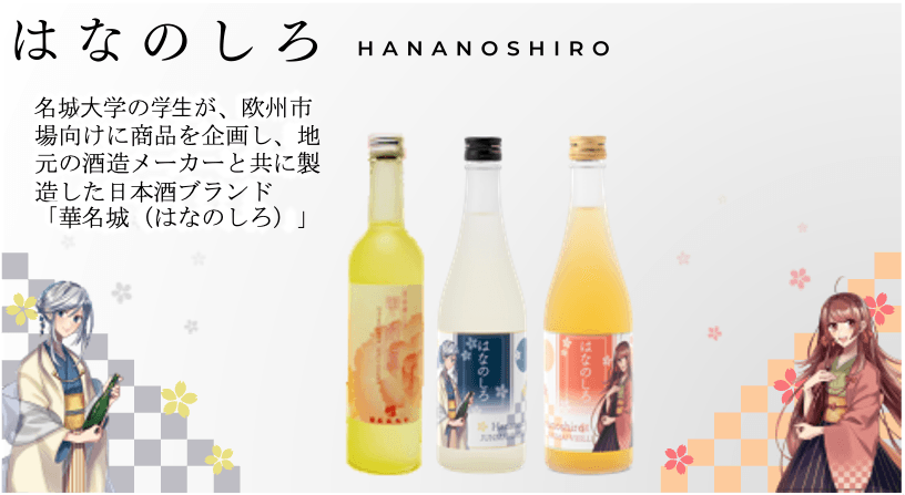 加藤教授が開発した大学オリジナルブランド清酒:華名城(はなのしろ)