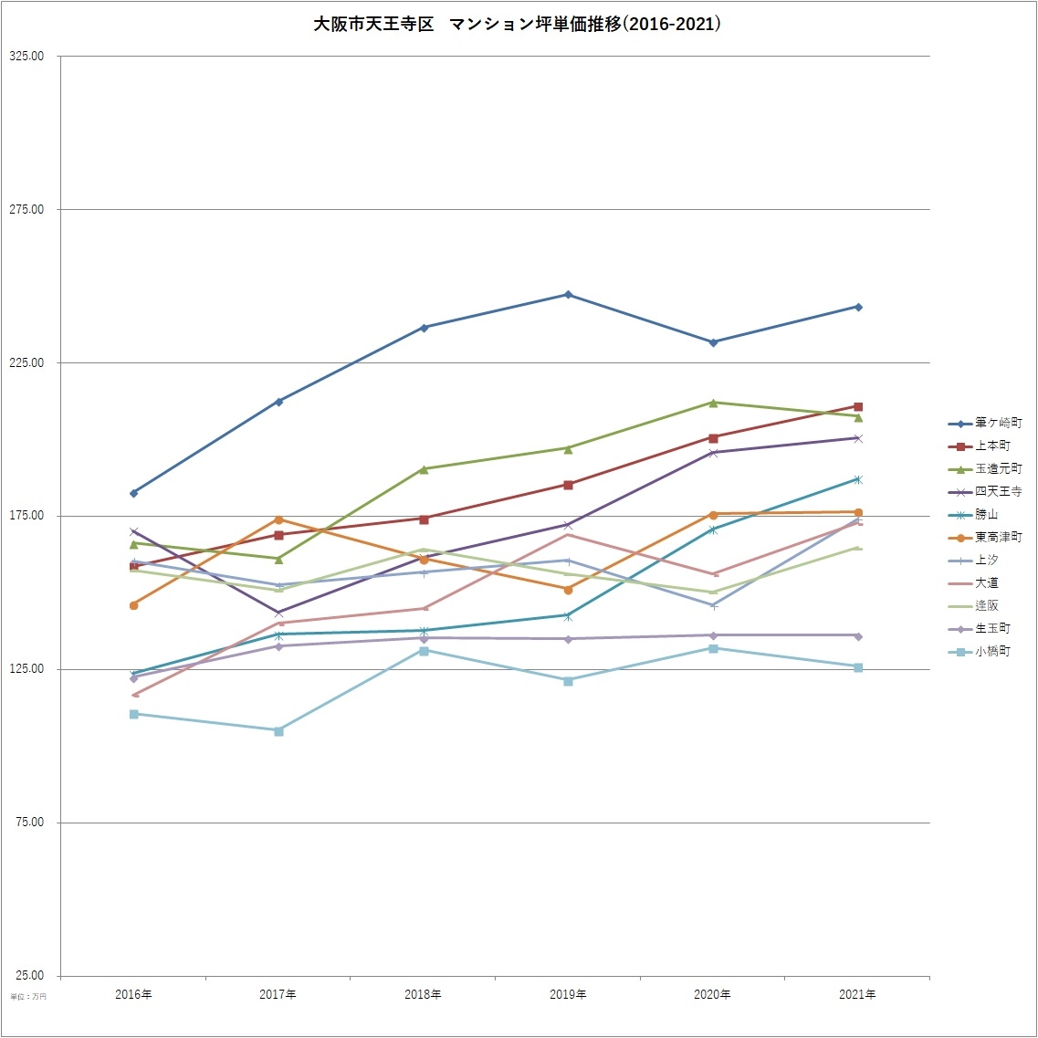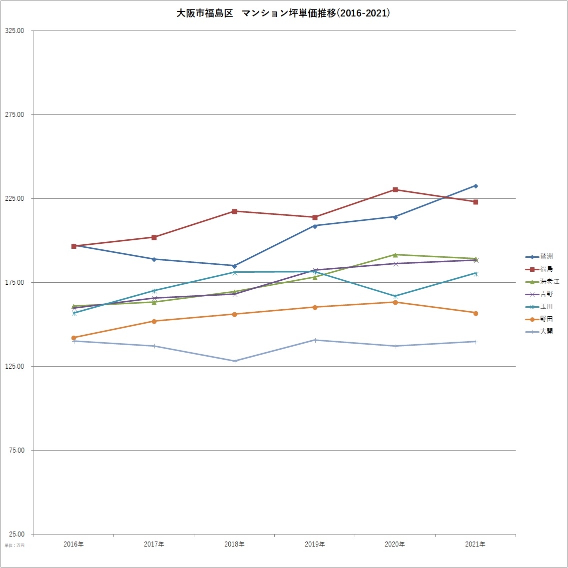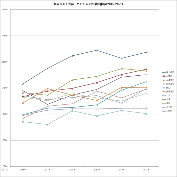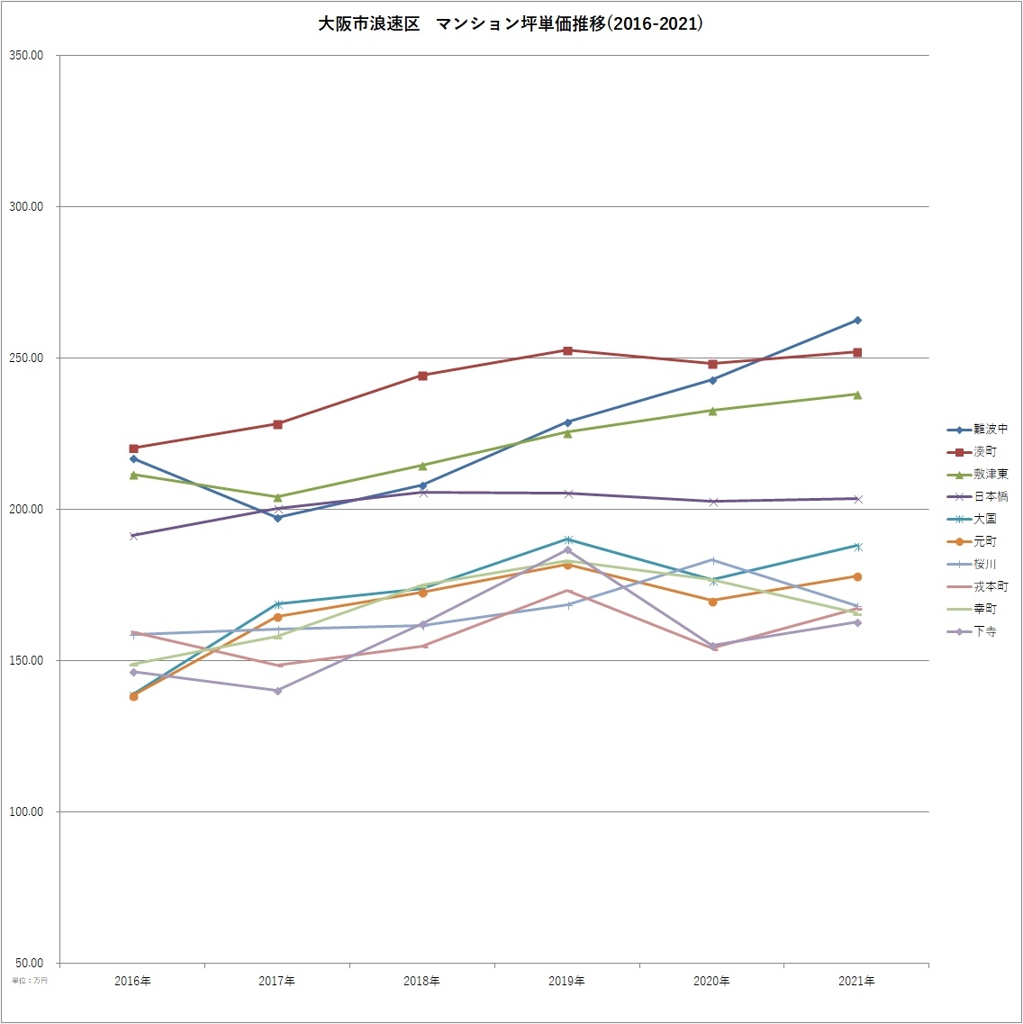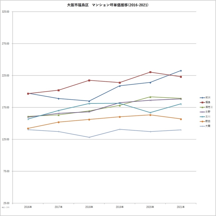 「マンションレビュー」のデータで見る「大阪都心6区のマンション相場推移5年」 中古マンション相場の町名ランキングを発表