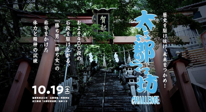 太郎坊チャレンジ実行委員会は、2024年10月19日(土)、滋賀県東近江市にある太郎坊宮にてステアクライミングイベントとして日本初(※)の「勝ち男・勝ち女」を決める「太郎坊チャレンジ2024」を開催いたします。