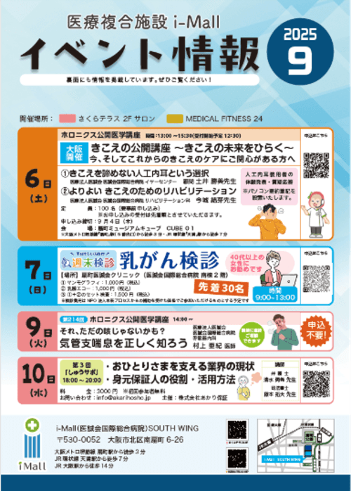 医療複合施設i-Mallの「緑の回廊プロジェクト」では、都市にいながら自然の恵みに触れ、心と体の健康を育む多彩なイベントをご提供しています。医誠会国際総合病院は、自然と都市が調和する未来を目指し、これからも持続可能なまちづくりと医療のあり方を考え続けてきます。