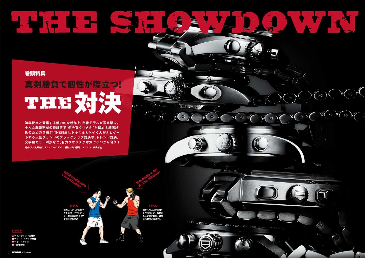 ブライトリング、タグ・ホイヤー、IWCシャフハウゼン、オメガ、ゼニスの2大定番を、歴史、スペック、使い勝手などを比べてWN流の勝敗を決める「同門対決」に加え、ステンレススチールとチタンのグレード比較、次世代の定番素材として採用相次ぐカーボンとセラミックの可能性など、素材別の検証を実施。また、20万円台で購入可能な最新10モデルの詳細スペックからハイコストパフォーマンスウオッチを導き出す検証企画に、定番ダイアルカラーの最新事情、仕上げやメカニズムの優劣に迫る二者択一への解答まで、あらゆる選択肢の難問からWN流の最適解を提示しました。