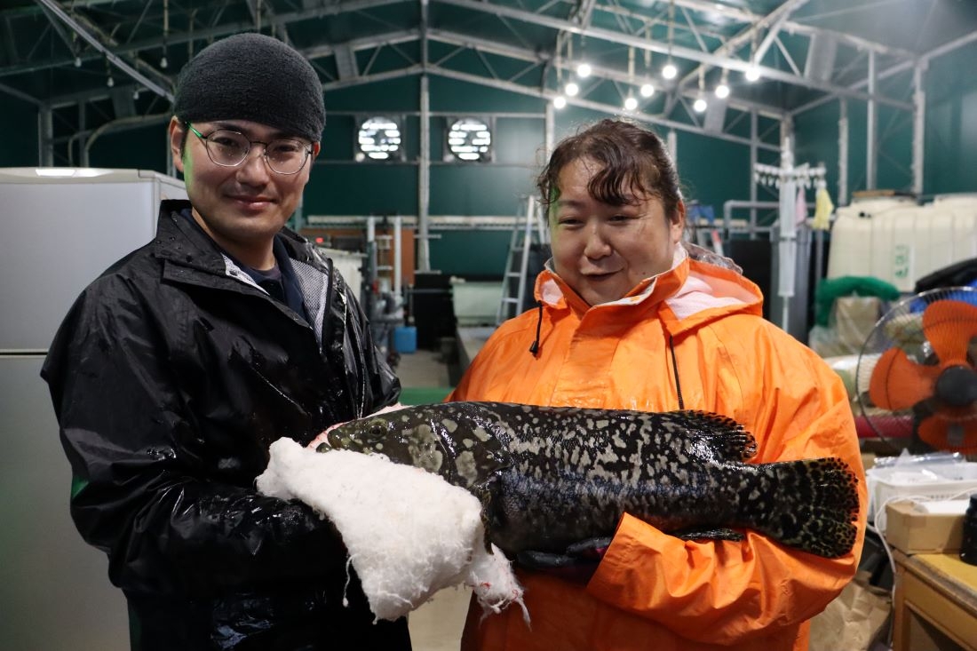 担当の岡山理科大学生命科学部の山本俊政准教授は「ここまで成長が早い魚種は初めて」と、その成長ぶりに目を丸くしています。日々の給餌や水質管理などを担当しているのは「つの水産振興・加工品開発協議会」職員の三輪将也さんと河野里美さん。山本准教授は「二人とも最初は養殖未経験だったのに、ここまで大きなトラブルもなく、本当によく頑張ってくれています。二人のおかげです」と話しています。