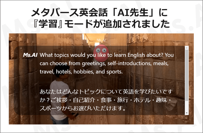 AIと英会話ができる「AI先生」に「学習」モードを追加