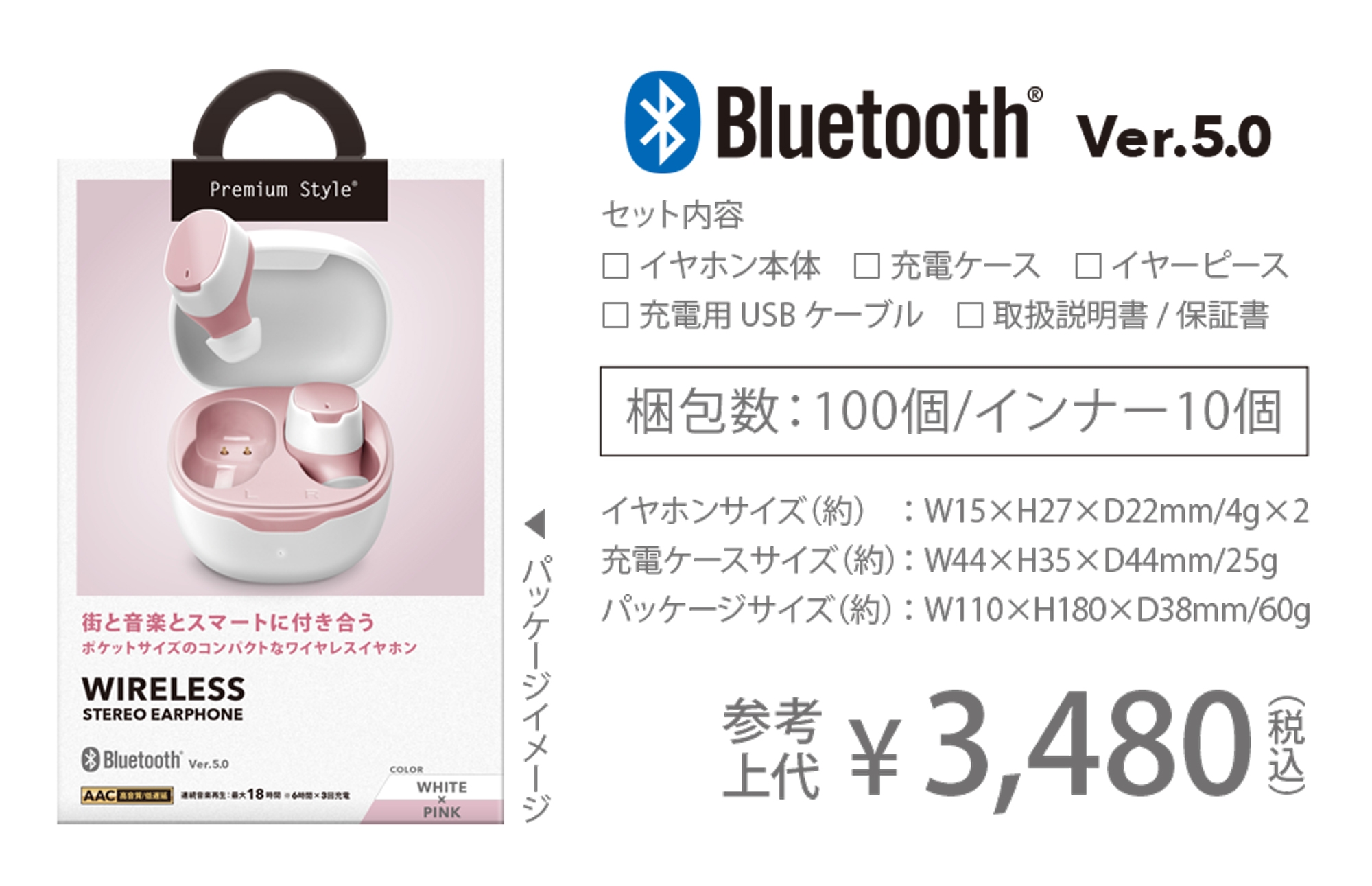 「Premium Style」Bluetooth® 5.0搭載 トゥルーワイヤレスステレオイヤホン (ポケットサイズ) を新発売