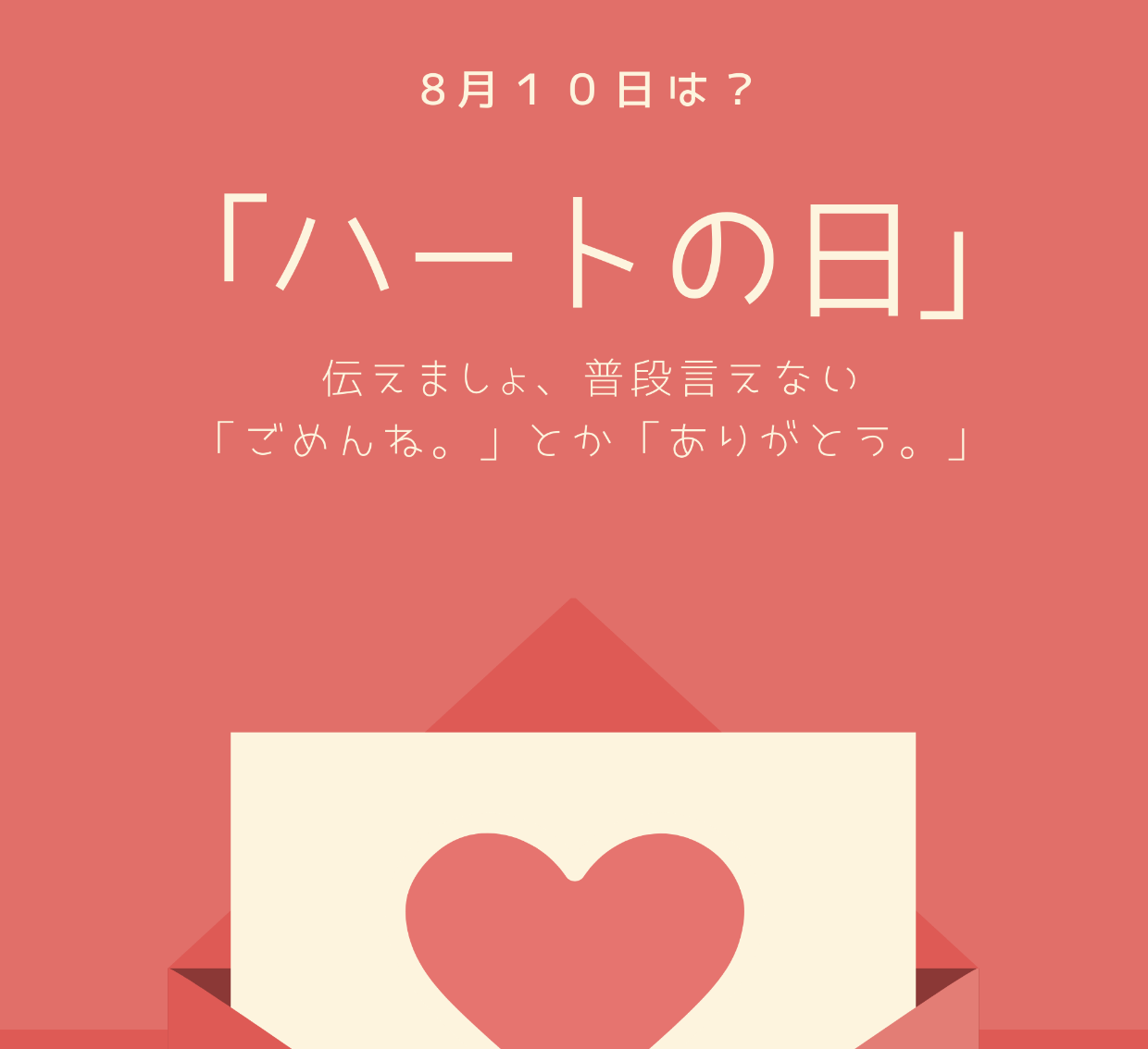 *8月10日「ハートの日」は、普段言えないありがとうやごめんねを伝えることで家庭や職場などの良好な人間関係作りのきっかけとなり、健康で幸福な人生100年時代を迎えることができるよう、2010年に同社が日本記念日協会で制定した記念日です。