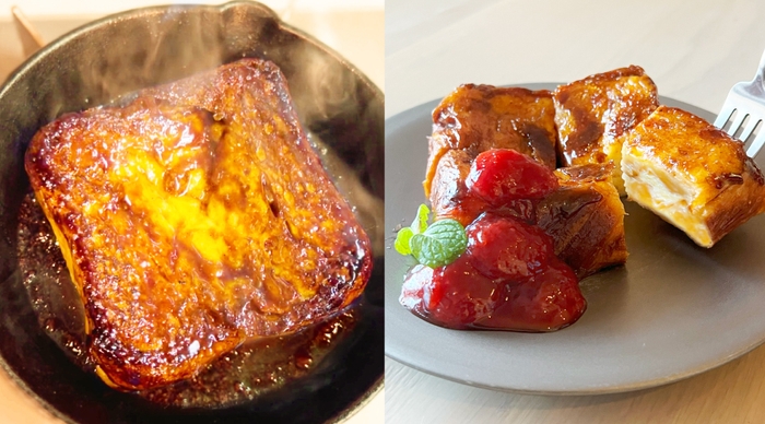 グランマーブルの看板商品「マーブルデニッシュ」。そのまま食べても美味しいデニッシュを、さらに一晩漬け込みフレンチトーストに。