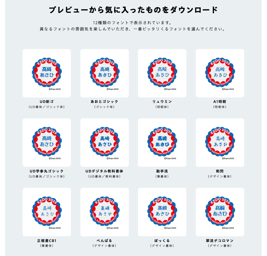 推し活素材やSNSアイコン・LINEスタンプにもぴったり!期間限定で万博モチーフも!デザインの組み合わせは全108通り。 モリサワ担当者コメント公開