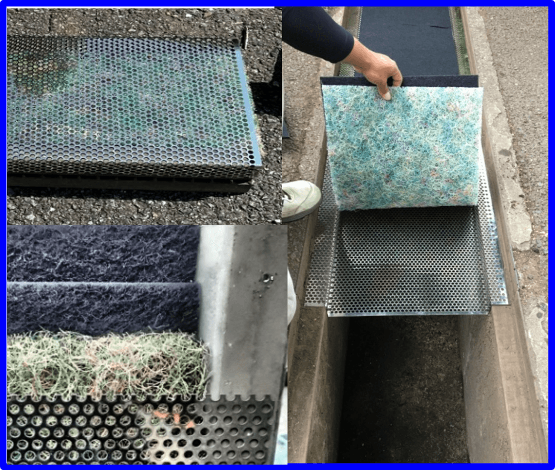 この革新的な技術を搭載した製品が、既存のグレーチングに後から取り付ける『分別集水マット(蚊絶滅マット)』と、グレーチングそのものを交換する『極細分別グレーチング(サンドストップG)』の二つです。