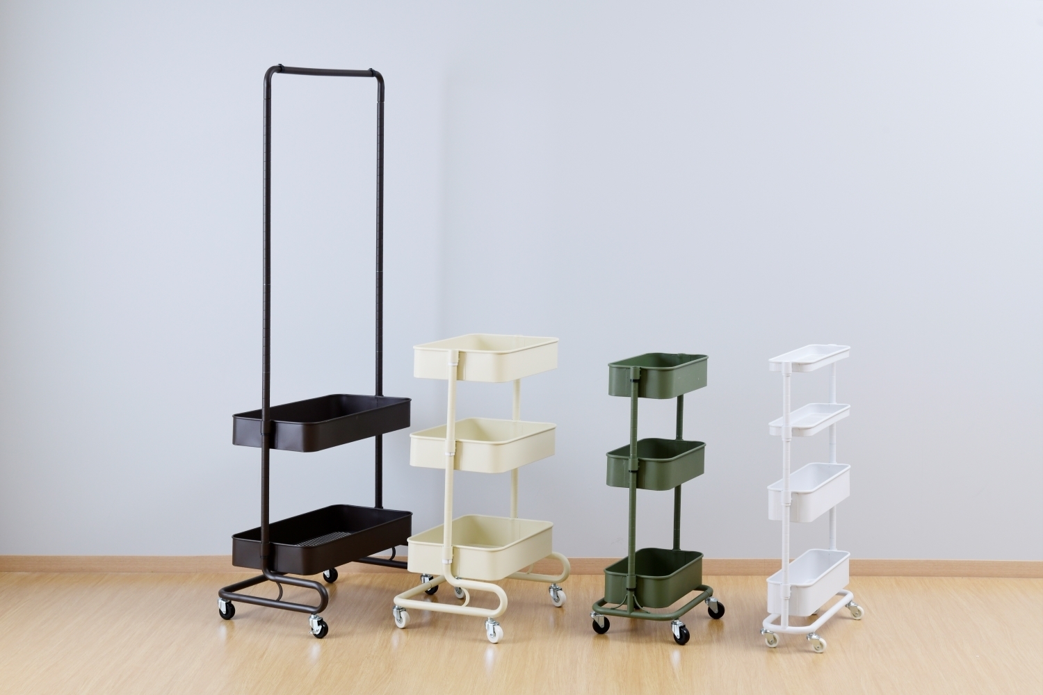 「すき間トローリー」を始め当社のバスケットトローリーシリーズは、どれも丸みのあるデザインです。インテリアに馴染むほか別アイテムを買い足しても、違和感なくご使用いただけます。