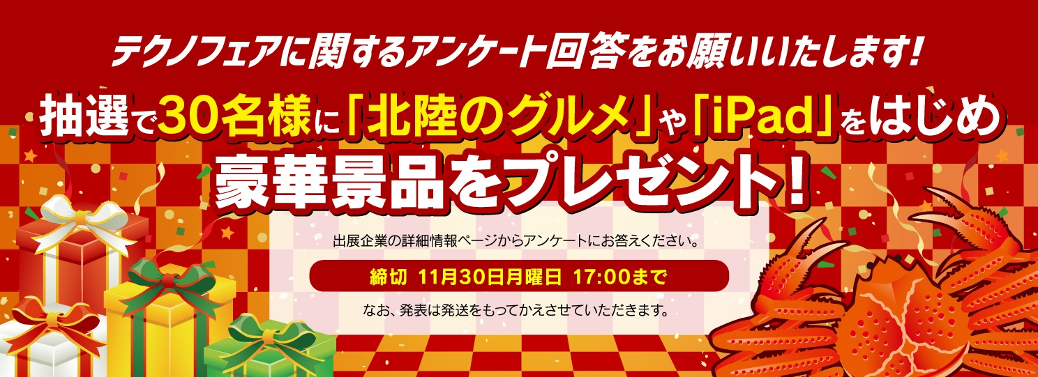 ◇テクノフェアの出展ページからアンケート回答いただいた方から抽選で30名様に景品をプレゼント!