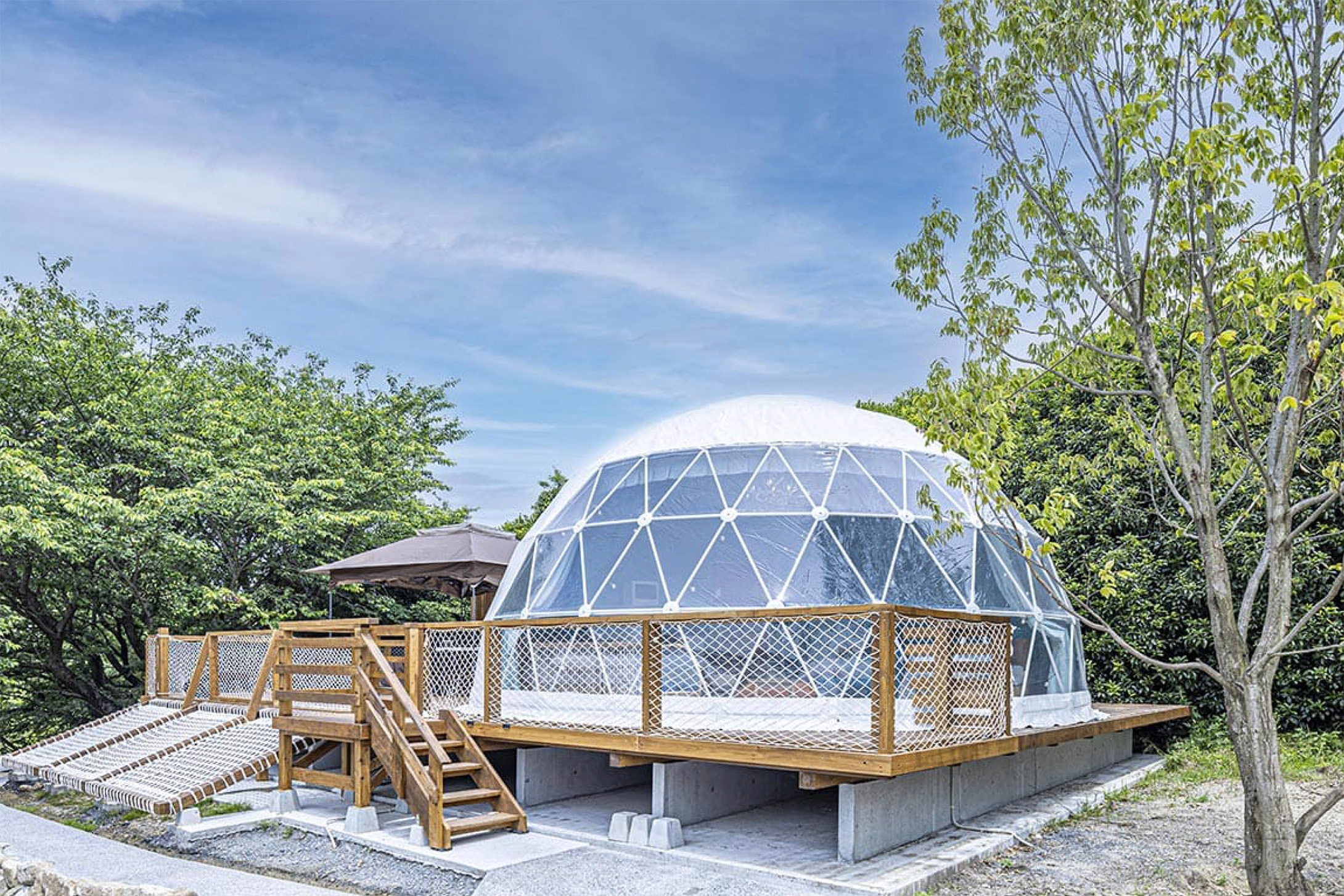 うきはの丘からパノラマ景色でRELAX&DETOXが出来る身近なリゾートとして、建築家がディレクションした夜景も楽しめるサウナ、こだわりの家具を設置したドーム型テント、ワンちゃんも寝泊りできるテントサイトもご用意しており、ケージやロングリード、食器、トイレシートなど犬用アメニティもあります。