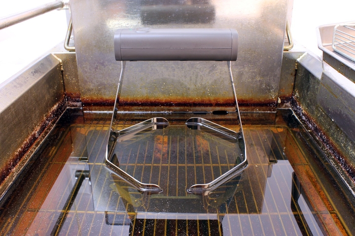 従って、フライヤーの場合は、調理時に電波を照射する必要がありません。調理前に油を改質させておけば、5日間はそのままお使いいただけます。