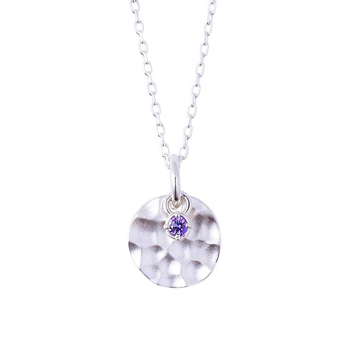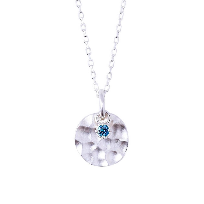 ストレートフォルムのリングにイメージカラーストーンをセットし、槌目×つや消し加工を施すことで、飾らない自然な雰囲気を表現しています。