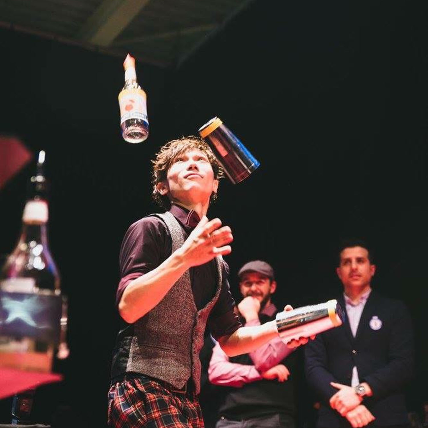 ボトルやシェイカーを投げながらいつの間にかカクテルを作るダイナミックなパフォーマンスショー「フレアバーテンダーMITSU氏」による、圧巻のパフォーマンスです。