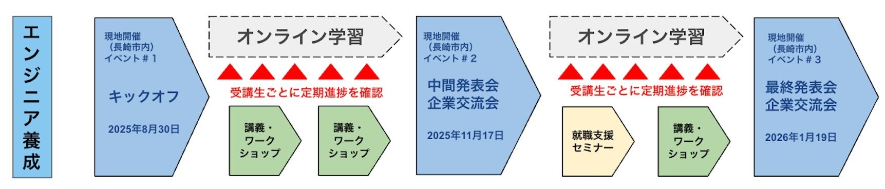 (キックオフ、中間/最終発表会・企業交流会は長崎市内で実施予定)