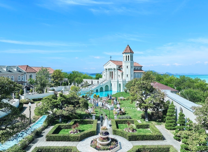 広大な敷地には、白亜のチャペルと5つの貸切邸宅が点在。ガーデンやプールのある豪華な洋館に、別荘の