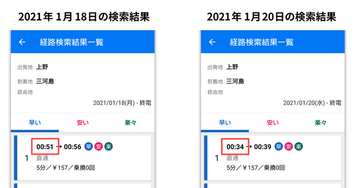 そこで、お客様へいち早くより正確なご案内ができるよう、「駅すぱあと」を搭載するすべての製品・サービスにおいて、首都圏の終電時刻の繰り上げに2021年1月16日(土)より対応しました。