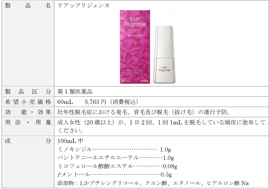 日本で唯一※2の女性用発毛成分※3ミノキシジル配合の医薬品 ~リアップリジェンヌ~